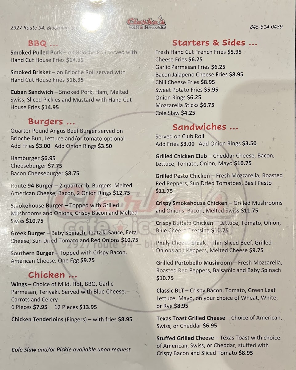 Welcome to Clarke's Cafe & Ice Cream, a delightful food haven located in Chester, NY. This charming eatery boasts a vibrant menu that combines classic comfort food with scrumptious ice cream treats.